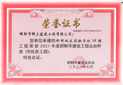 日前,2021年度邯郸bob综合体育官网app下载设AYX爱体育丛台杯奖(市优质AYX爱体育)获奖名单公布...